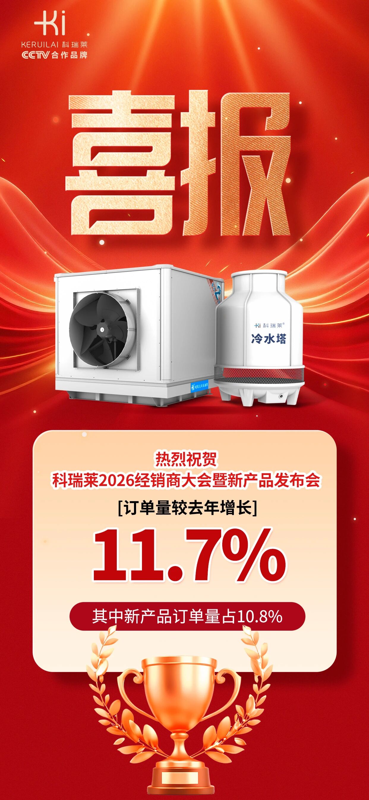 热烈祝贺科瑞莱2026年经销商大会暨新产品发布会订单量比去年增长11.7%,其中新产品占10.8%